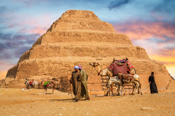 Ensuite, vous visiterez Saqqarah, située à 28 km au sud du Caire, est le nom de la nécropole de Memphis, l’une des capitales de l’ancienne Égypte. Le site, découvert en 1850 par Auguste Mariette, englobe une superficie d’environ 8 km de long sur 2 de large. Dés 2700 avant JC. On y enterra des pharaons et leurs épouses, des notables et leurs animaux sacrés pendant deux siècles Au moins 15 pyramides royales y sont connues Cependant, la plupart d’entre elles ont perdu leur forme originelle.